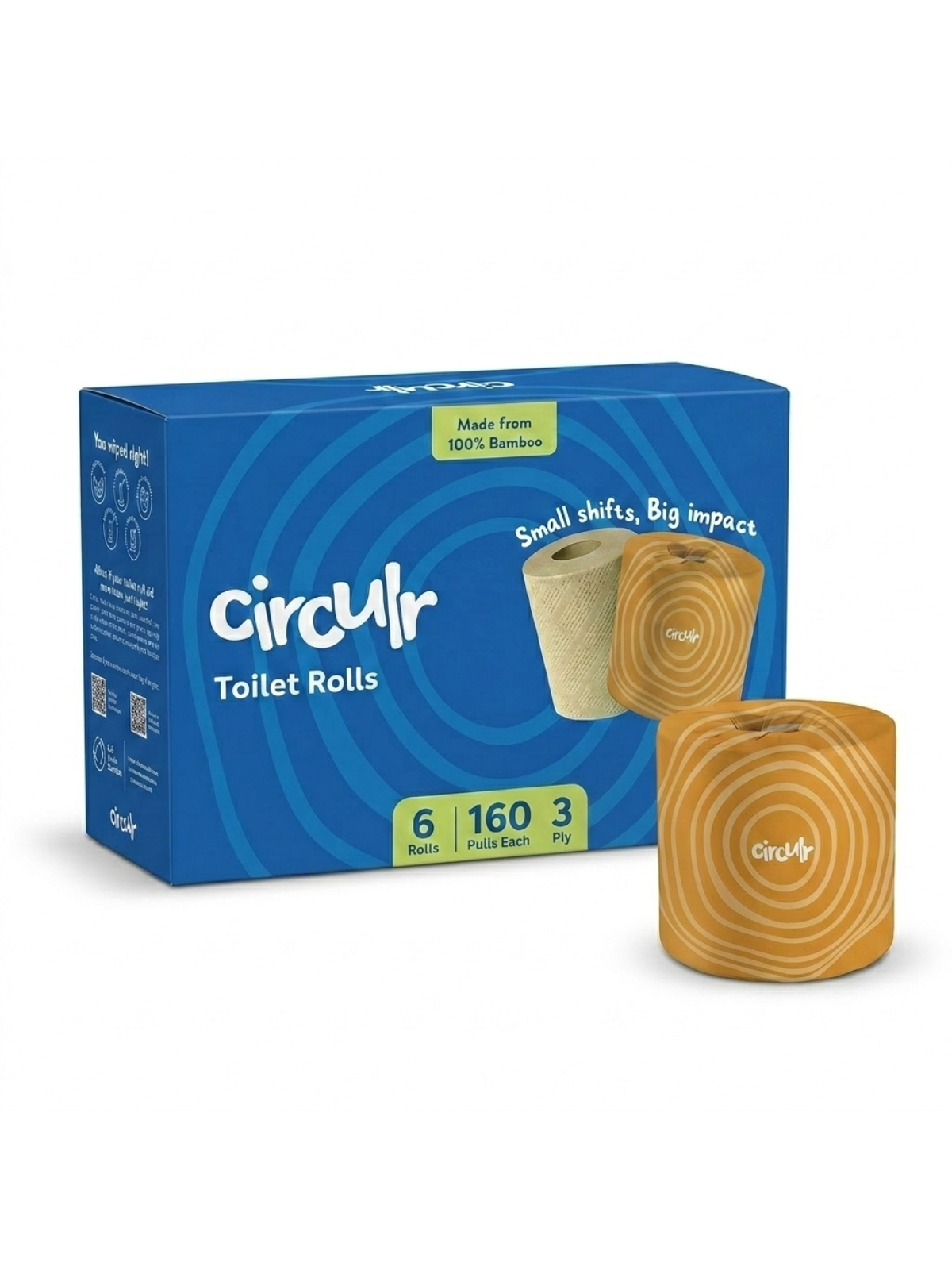 Circulr Toilet Rolls are made for comfort without compromise. Crafted from responsibly sourced bamboo pulp, they are soft, strong, and designed for everyday hygiene. Free from excessive bleaching and unnecessary additives, they provide a clean and dependable experience. The rolls are structured for smooth tearing and efficient usage.
